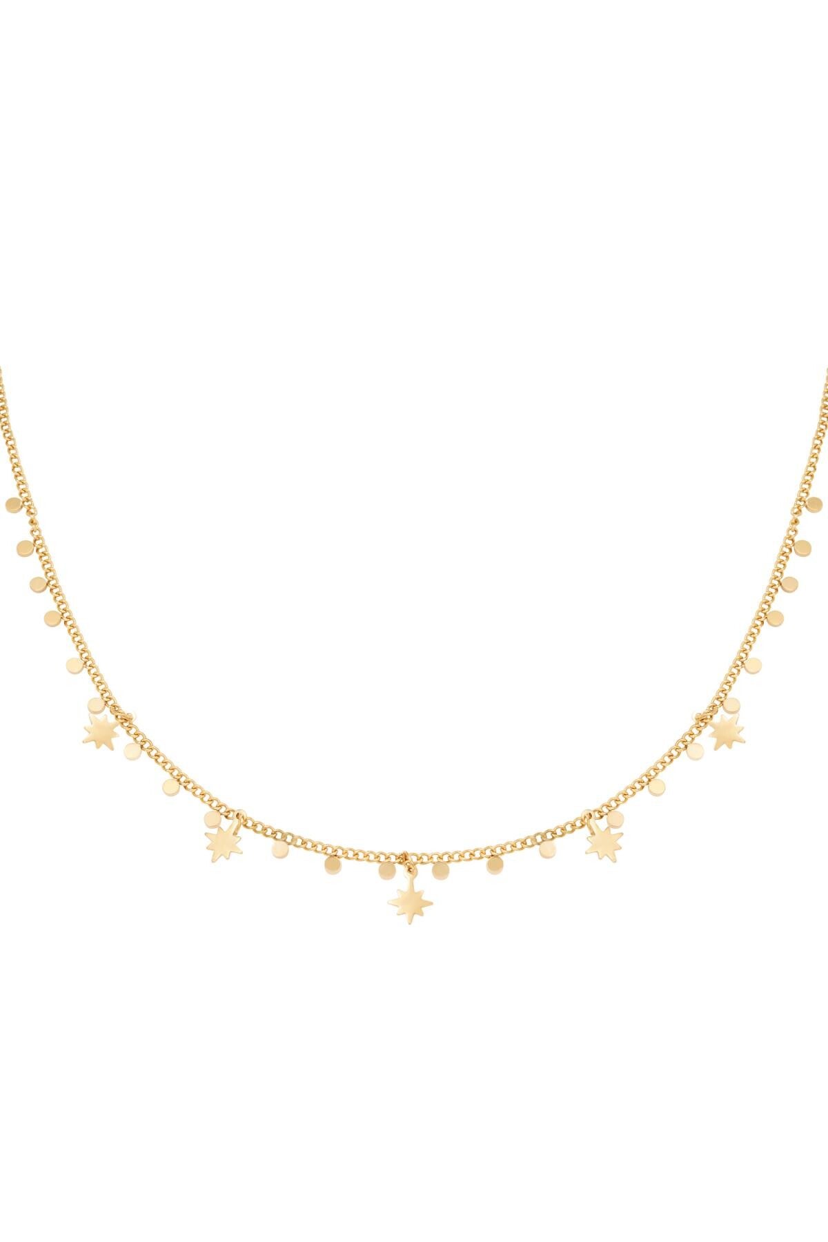 Hoe mooi is deze ketting goud! Met een leuke kleine cirkels en sterren. De ketting is 37 cm met een verlegstukje van 5 cm.