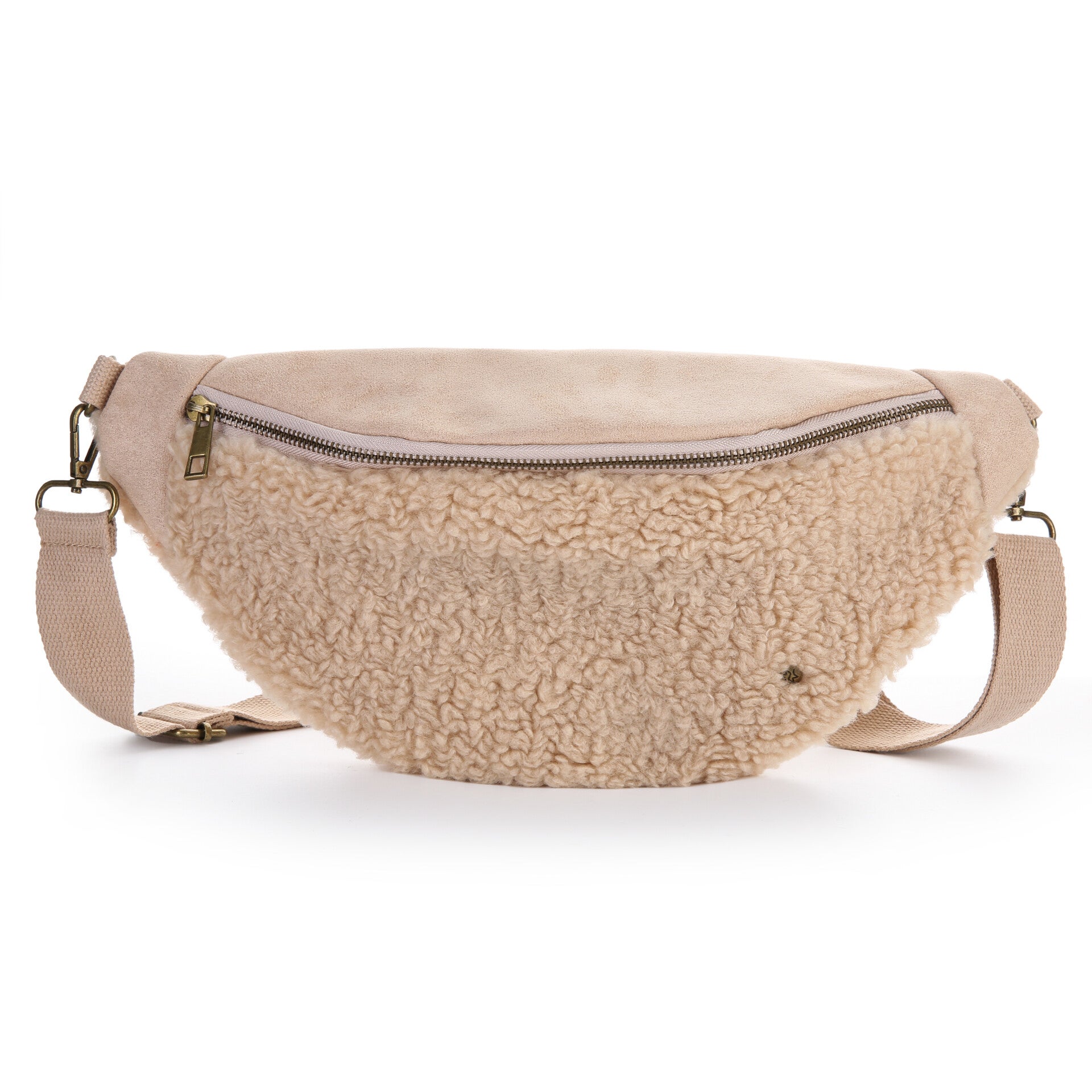 Deze superleuke heup tas ferry beige. Heeft aan de voorkant en achterkant een heerlijke zachte teddy stof. Fijn draagbaar.
