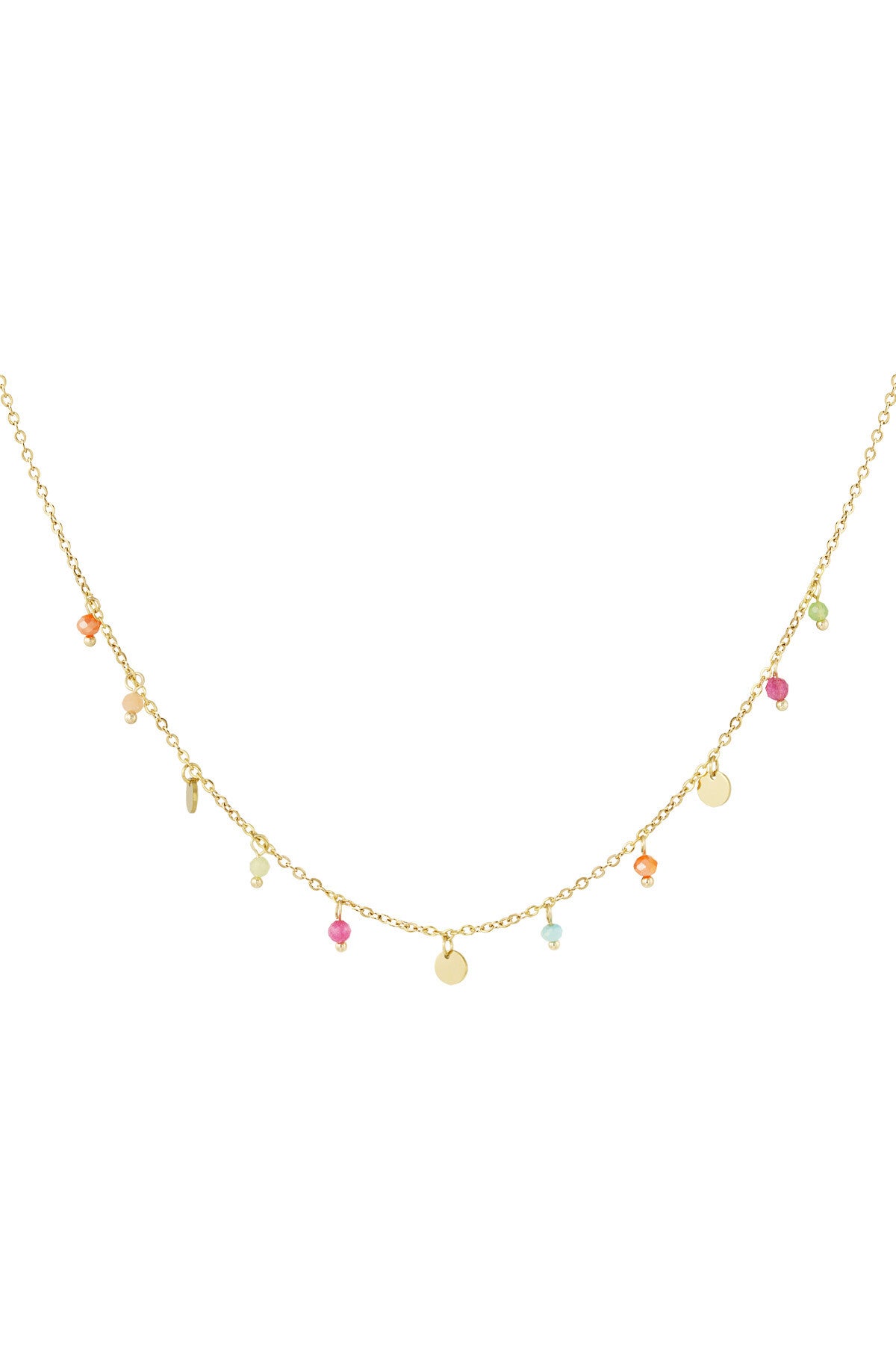 Zomer trend ketting met gekleurde bedeltjes eraan vast. De afmeting is 39cm lang met verlengstukje 5cm.