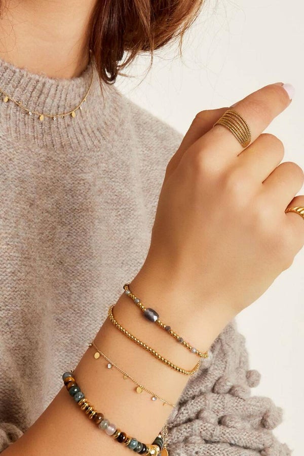 Mooie gouden armband met leuke ronde bedels en ronde bedels met een strass steentjes!